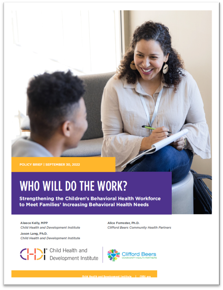 /A report and series of recommendations developed by the Child Health and Development Institute (CHDI) and Clifford Beers Community Health Partners calls for a series of state actions and investments to expand the state’s behavioral health workforce, in response to the increased need for behavioral health services, particularly to youth. Rising rates of anxiety and depression among children have exacerbated longstanding strains on the behavioral health system and its workforce, according to the report and highlighted in recent data.